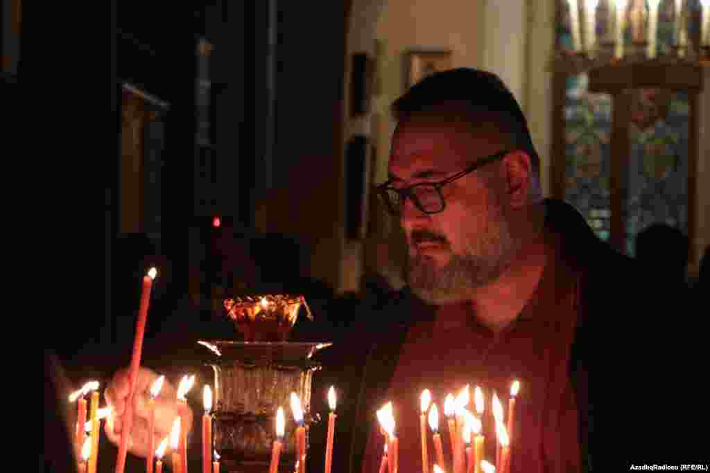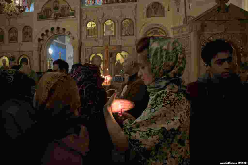 Aprelin 16-da Azərbaycandakı pravoslavlar Bakıdakı Müqəddəs Mürdaşıyan Zənənlər pravoslav kafedral kilsəsində Pasxa ilə bağlı dini ayininlər icra ediblər